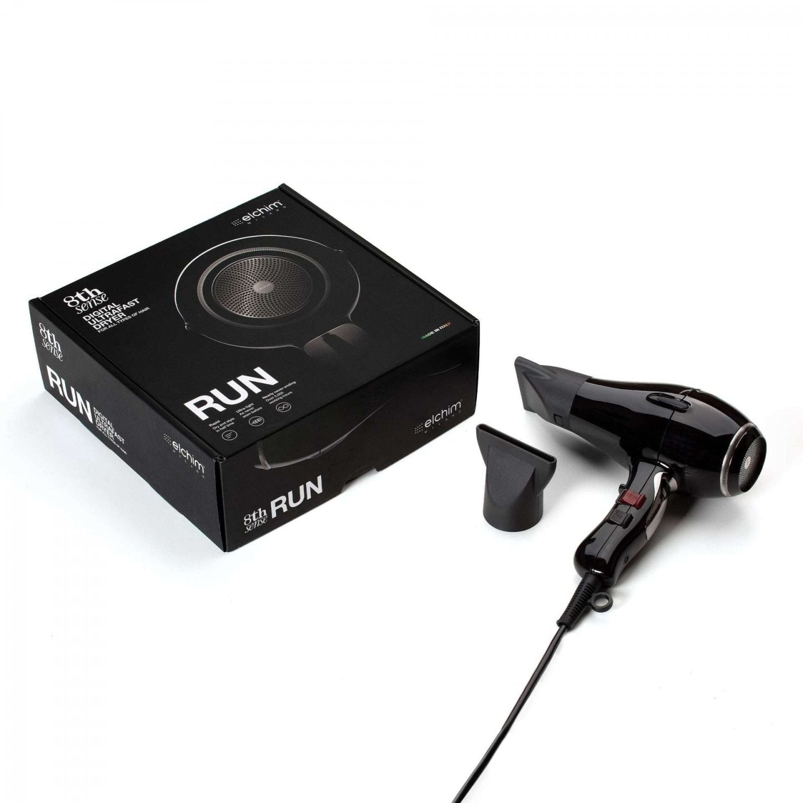Linia 8th Sense de la Elchim întâmpină o nouă generație de uscător cu un motor digital fără perii ( TEHNOLOGIE BLDC) inovator, ușor și de lungă durată, proiectat să păstreze integritatea părului pentru toate cele 8 tipuri de păr existente. Finalist "Elle Beauty Awards Italy" în 2021.